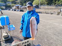 三宅美智代さん(浅場の筏)午前中は北風強く多少パタパタしましたが頑張ってくださいました。先日のウネリで濁り継続中ですので活性高く良い感じ♪水温18 |