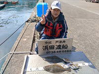 滝本氏(浅場の筏)肉厚ヒラメ月初めからありがとうございました。チヌ狙いボラガンガンすぎでした。中層から底までチヌもガンガンになっているかと思いますの期待しております。水温18.6 |