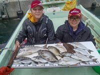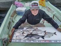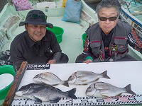 | 29(水) | ![]() 奥野氏(船外機)北風ビュービューでしたがなんとか風裏で釣果頂きました。明日は凪で3連休は北風強く揺れそうです。浅場は一日できそうかな? |