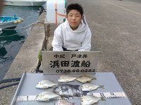 | 4(土) | ![]() 山根氏、宮本氏(深場の筏)雨の中ありがとうございました。連日エサも残らない高活性。サシエでて10秒残ればチヌ沢山釣れるんですが。浅場のアオリイカ狙いもお願いします。ベイトはキビナゴ。来週は台風の影響で週の後半は休船になりそうです。水温25.5 |