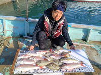 | 23(木) | ![]() 奥田氏(深場の筏)今日も北風強い中ありがとうございました。色々と活性も高く!明日はべた凪で土曜日も北風ないので出船します。 |