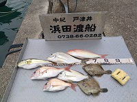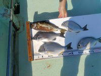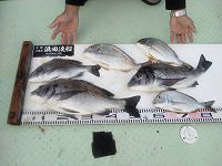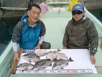 山根氏、宮本氏(深場の筏)雨の中ありがとうございました。連日エサも残らない高活性。サシエでて10秒残ればチヌ沢山釣れるんですが。浅場のアオリイカ狙いもお願いします。ベイトはキビナゴ。来週は台風の影響で週の後半は休船になりそうです。水温25.5 |