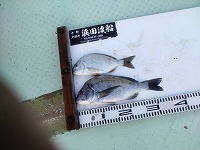小野氏(深場の筏)チヌ狙いのお客様で出船。ボラもいて色々と活性よろしいです。明日も出船予定です。水温26.8 |