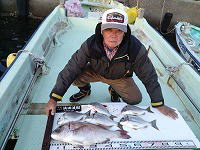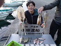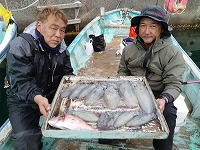 奥野氏、土居氏(船外機)北風で少しバタバタして寒かったですが色々と活性高く船外機でアオリイカも!浅場のアオリイカも狙いにお越しください。水温22 |