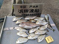 上野氏(深場の筏)良い凪で魚の活性もぼちぼちで良い感じでした。明日は昼から雨模様で少し寒くなりそうです。水温23.2 |